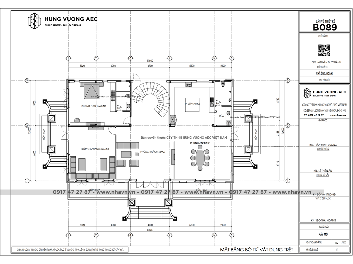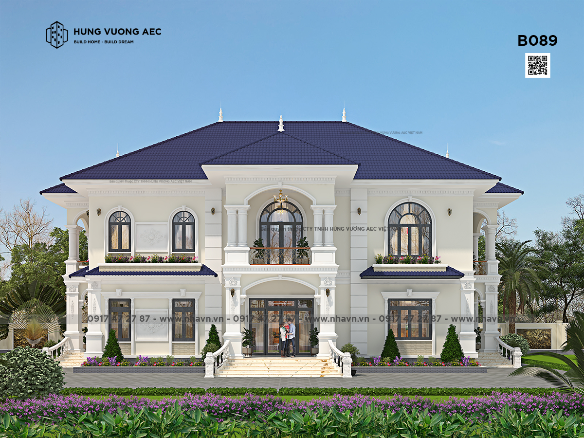 Với nhu cầu của gia chủ, các kiến trúc sư ưu tiên sử dụng thiết kế biệt thự tân cổ điển, một phong cách không quá cầu kỳ về trang trí và thi công nhưng vẫn toát lên vẻ sang trọng, đẳng cấp qua các đường nét đặc trưng. Có thể thấy rằng, biệt thự 2 tầng của gia đình đáp ứng được đầy đủ những yêu cầu của anh về mặt thiết kế. Với biệt thự mặt tiền dài, kiến trúc Hung Vuong AEC đã giúp ngôi nhà của được hoàn thiện từ công năng cho đến thiết kế nội ngoại thất ấn tượng.