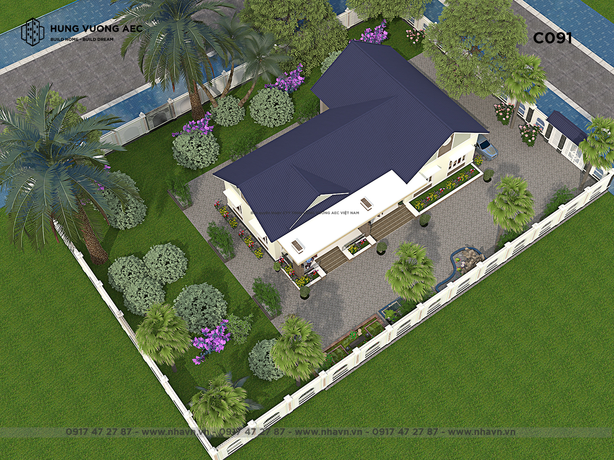 Cách phối cảnh biệt thự trệt nhà vườn đẹp thoáng mát.