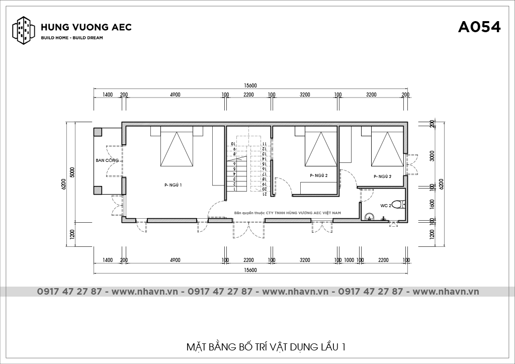 Lầu một của căn nhà được bố trí với 3 phòng ngủ và 1 nhà vệ sinh chung.