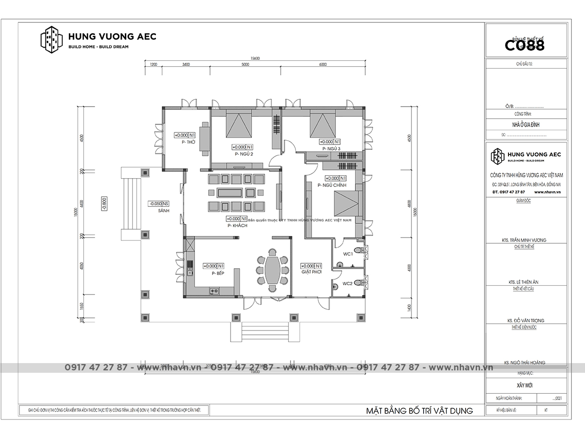 | 1 | Công năng sử dụng | 1 phòng khách, 1 phòng ăn, 1 phòng bếp, 3 phòng ngủ, 2 WC, phòng thờ |