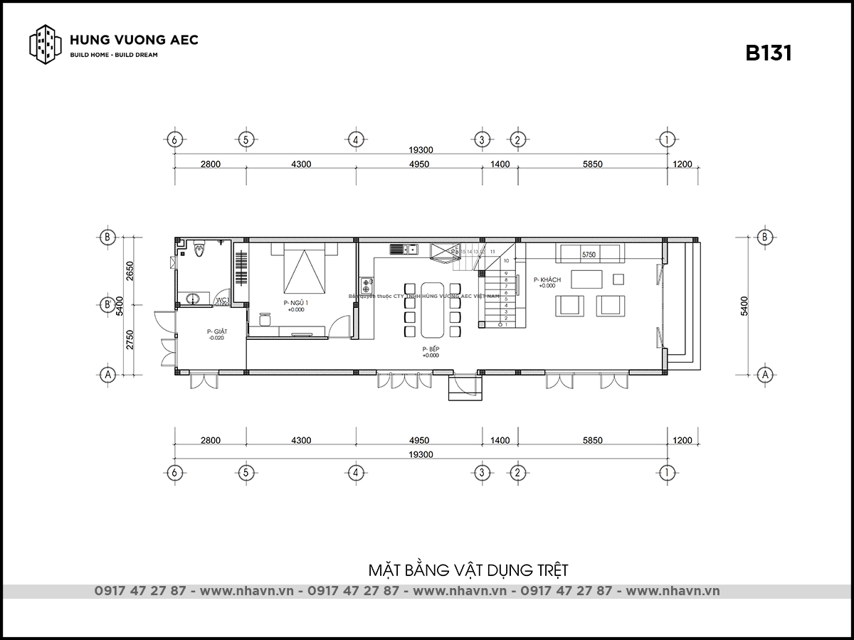 Tầng 1 gồm 1 phòng khách, phòng bếp, phòng ngủ cho ông bà, và nhà vệ sinh chung.