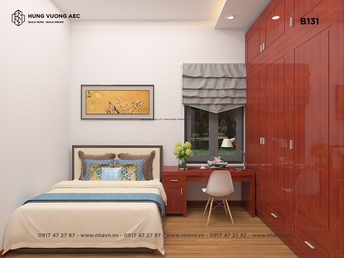 Tầng 2 được thiết kế với 2 phòng ngủ, 1 phòng thờ, và nhà vệ sinh dùng chung cho cả tầng.