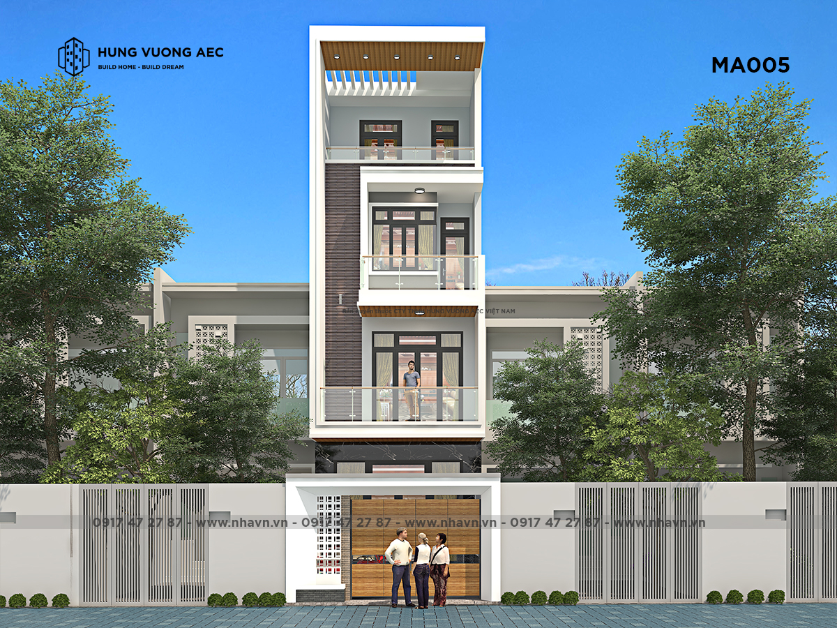 Mẫu nhà phố 4 tầng mang phong cách hiện đại, trẻ trung được các kiến trúc sư Nhavn.vn thiết kế. Mẫu thiết kế này nhận được nhiều lời khen ngợi từ gia chủ bởi lối kiến trúc đơn giản, sang trọng và tinh tế. Hãy khám phá ngay mẫu nhà phố 4 tầng từ Nhavn.vn để có thêm ý tưởng cho kế hoạch xây dựng tổ ấm của bạn trong tương lai.