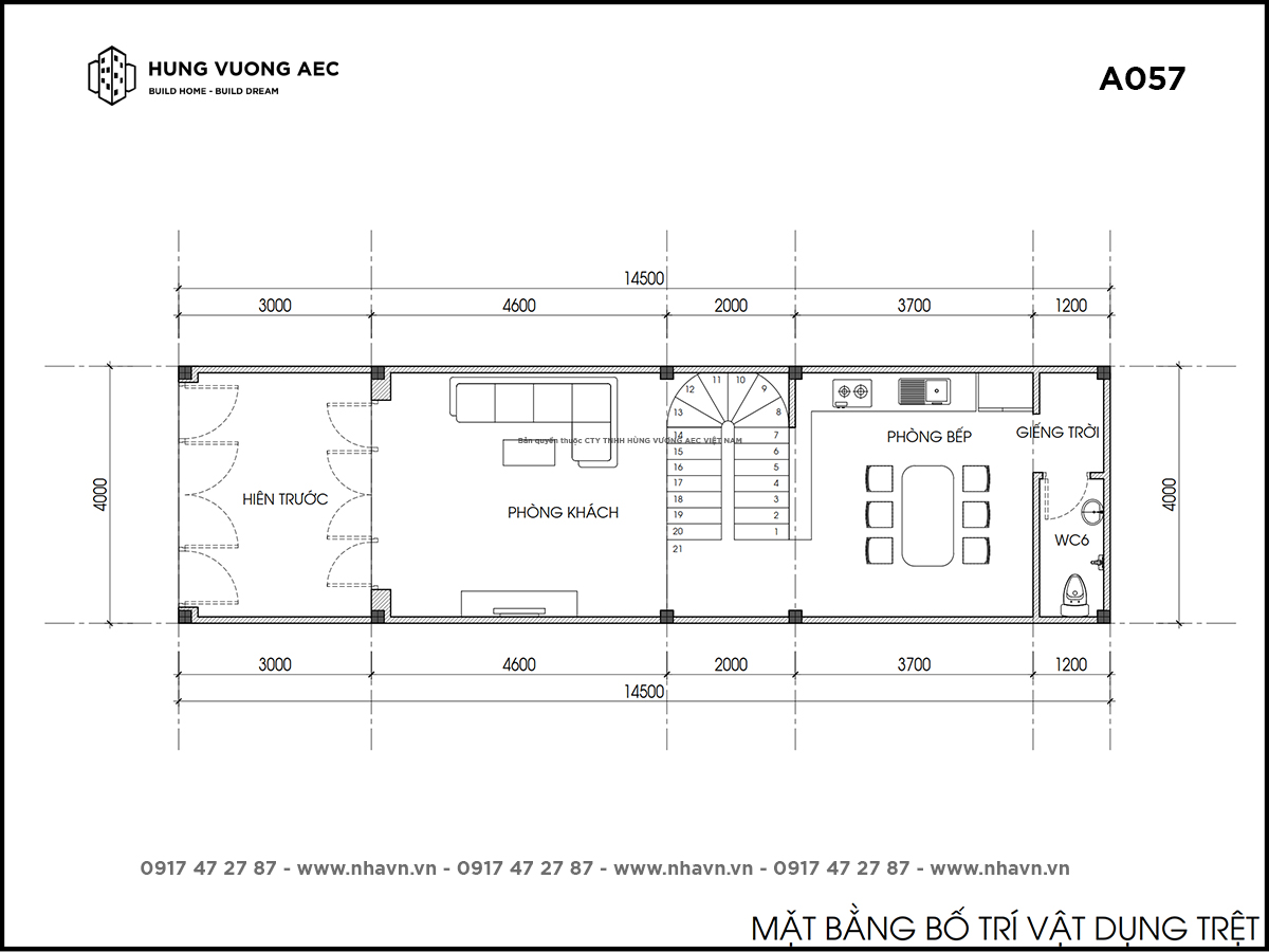 | 2 | Diện tích đất xây dựng | 4x14.5m |