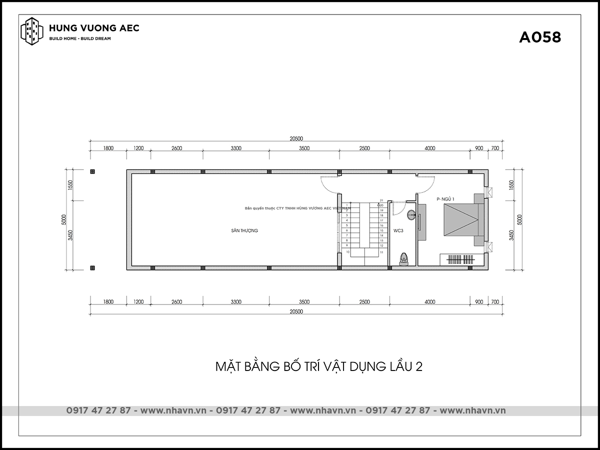 Tầng 2 được bố trí gồm 1 phòng ngủ, sân thượng và 1 WC