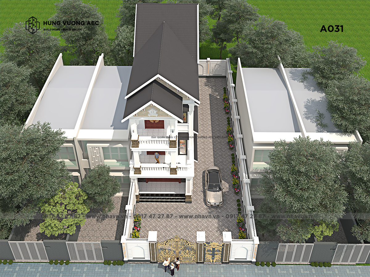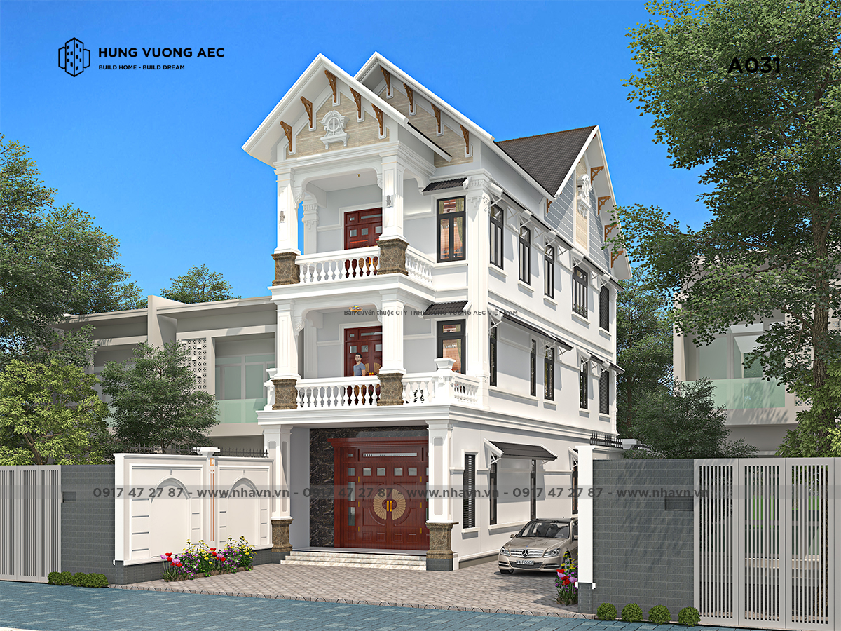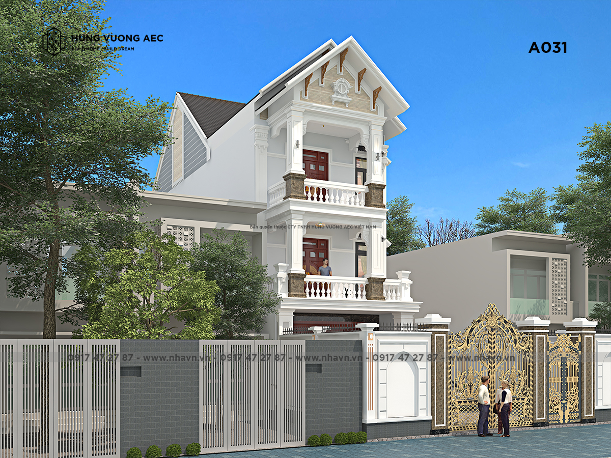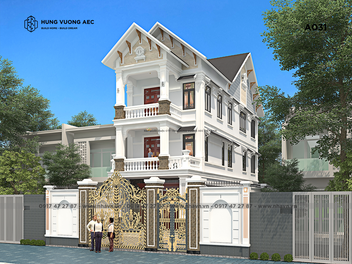 Cách xử lý của các kiến trúc sư Nhavn.vn từ không gian sinh hoạt riêng trong căn nhà với những cửa vòm rộng, ban công được xây dựng hướng sáng để ánh sáng len lỏi khắp ngôi nhà hay những mảng sân vườn được bày trí tiểu cảnh trang nhã phong cách cổ điển châu Âu, đến không gian cảnh quan tổng thể của cả góp phần làm công trình nhà 3 tầng mái thái thêm hoàn hảo. Sự hoàn hảo của không gian quá sức tưởng tượng của gia chủ, bởi mặt tiền là cái để khoe ra bên ngoài xem quy trình thiết kế nhà.
