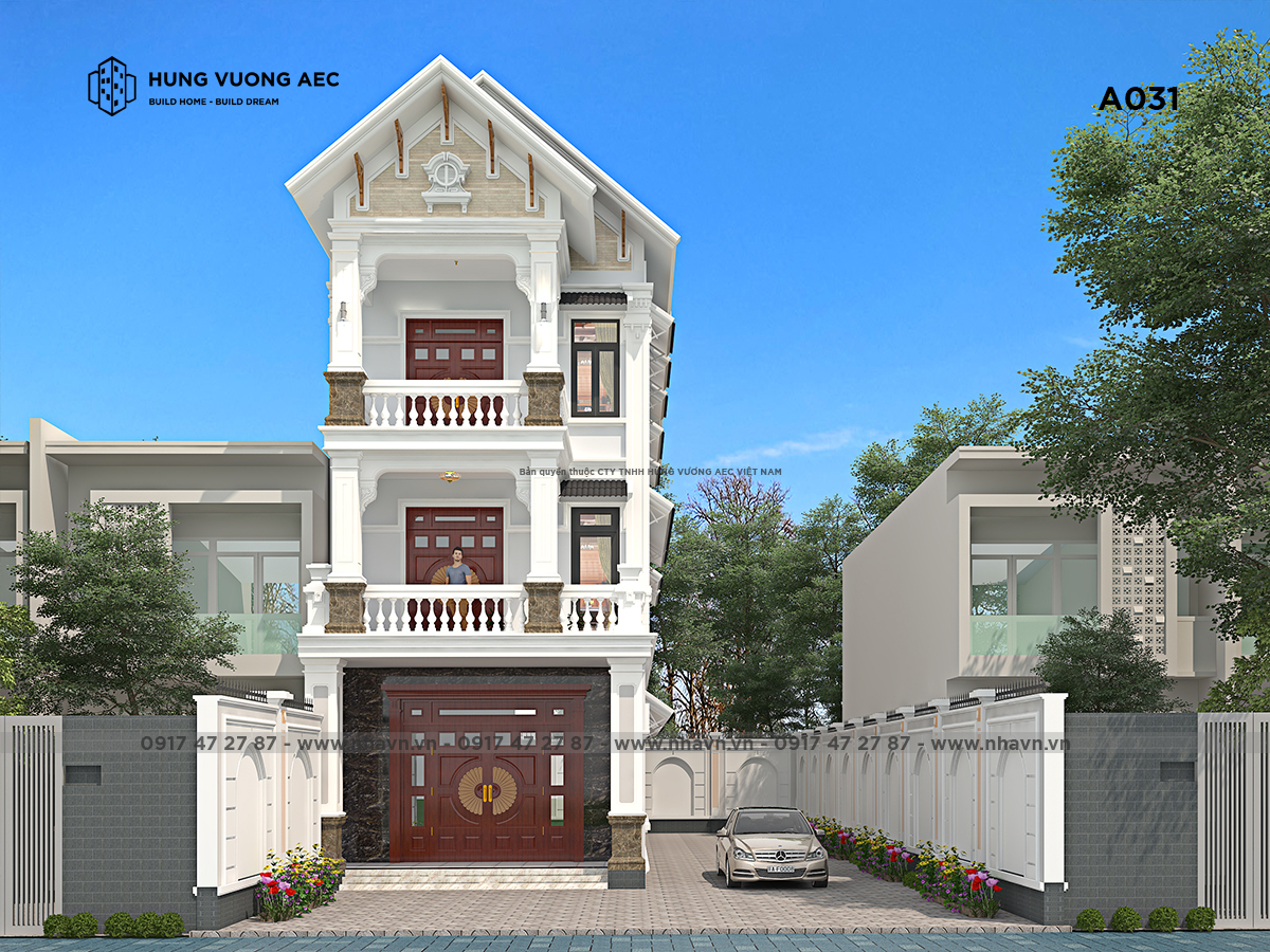 Trong nhiều năm trở lại đây, xu hướng thiết kế nhà phố đẹp với những cách tân hiện đại đang trở thành trào lưu được các cư dân từ thành thị đến nông thôn ưa chuộng và lựa chọn. Đây cũng là lí do vì sao ngôi nhà phố 3 tầng mái thái với phong cách mang hơi thở tân cổ điển trong lòng không gian xanh đang thu hút được sự chú ý của người dân hàng xóm cũng như người qua lại tại khu phố này.