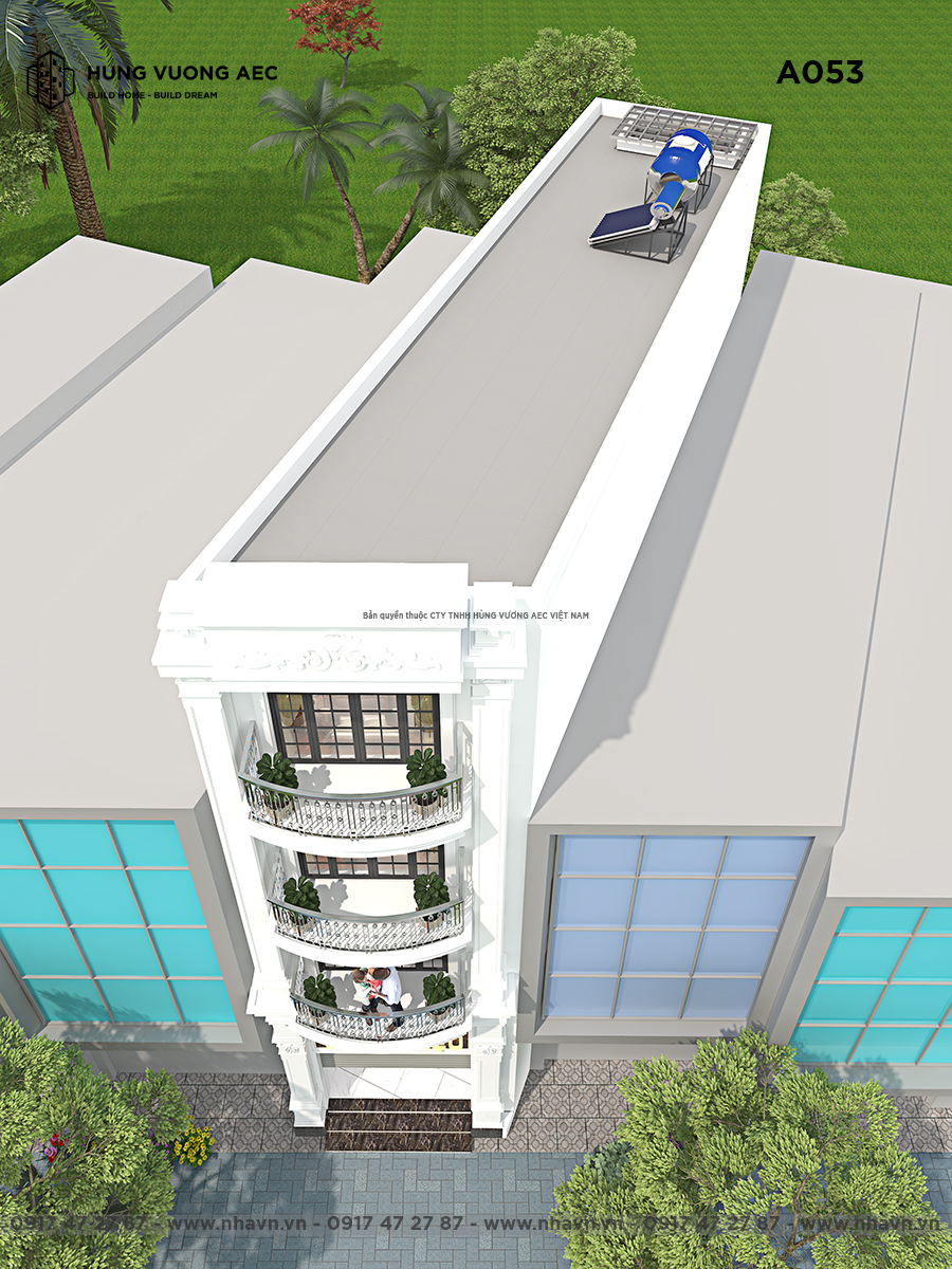 Giữa vô vàn những ngôi nhà ống hiện đại vuông hộp xung quanh, công trình nhà ống 4 tầng nổi bật với phong cách cổ điển sang trọng và đẳng cấp đến từng chi tiết hoa văn, phào chỉ. Ngôi nhà khoác trên mình tấm áo trắng tinh khôi cùng gam màu xanh than của hệ mái nổi bật tạo một sức hút mạnh mẽ với mỗi bất cứ ai khi di chuyển qua đây.