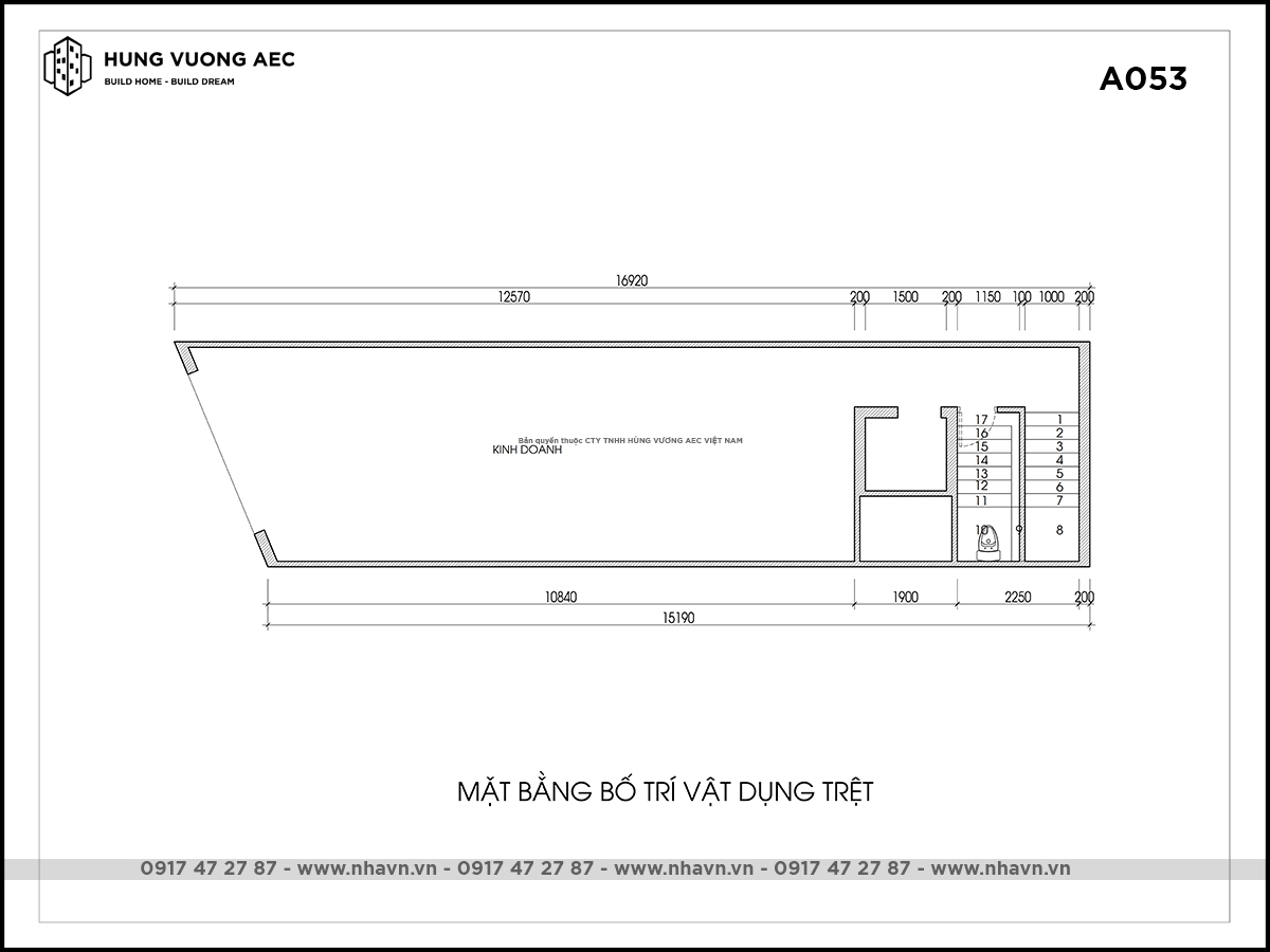 Tầng trệt được bố trí với không gian dành cho việc kinh doanh.