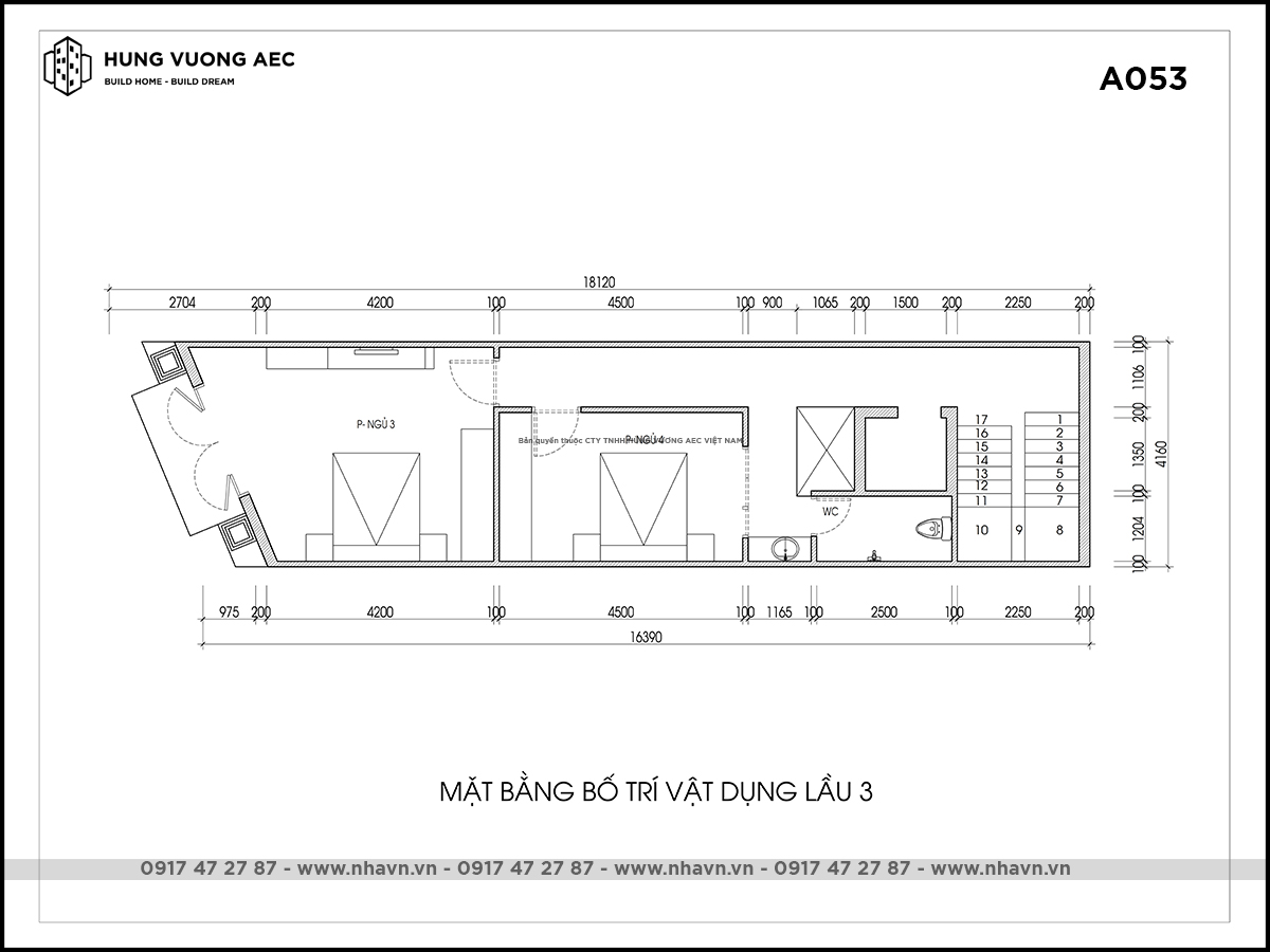 Lầu 3 được bố trí với 2 phòng ngủ cùng với nhà vệ sinh chung.