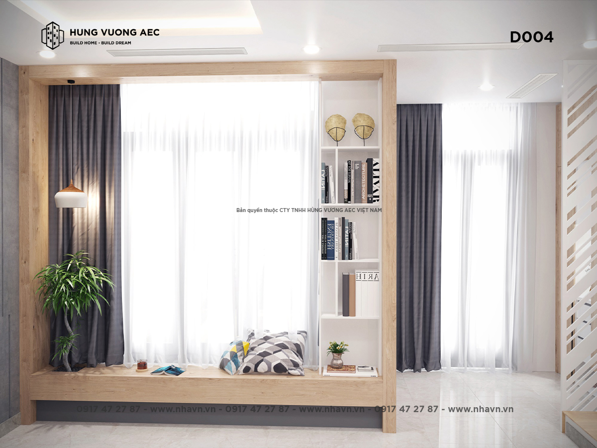 Bàn đọc sách được đặt cửa sổ bằng kính giúp căn phòng nhận được nhiều ánh sáng tự nhiên, đem lại cảm giác thư thái khi đọc sách.