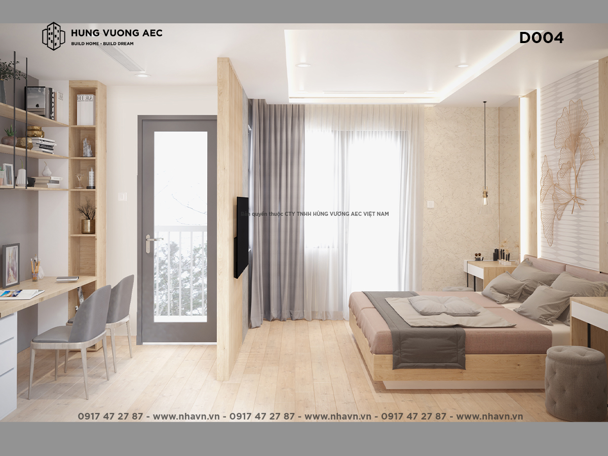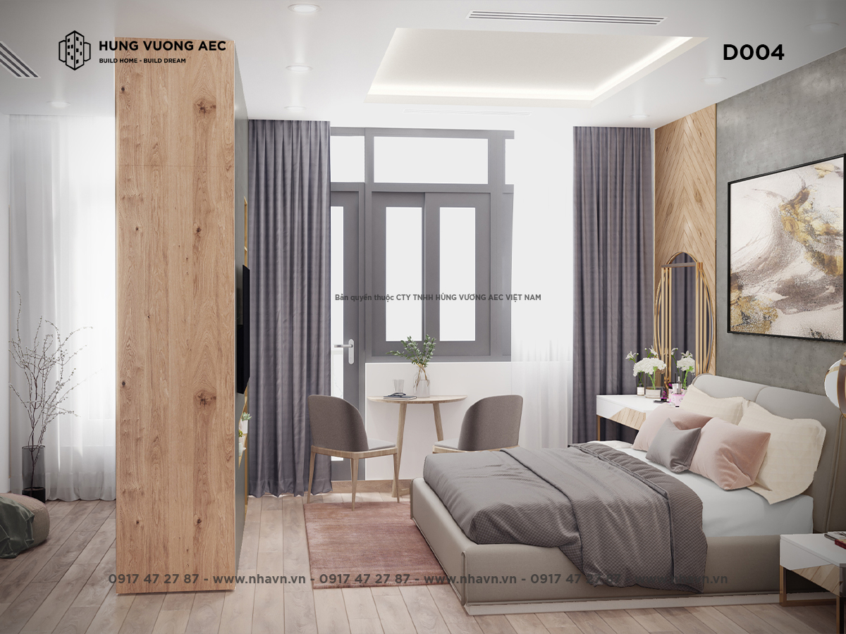 Phòng ngủ của căn nhà được thiết kế đa dạng hơn với những tone màu trung tính, tối giản nhưng khi kết hợp lại đem cho gia chủ cảm giác thoải mái trong căn phòng nghỉ ngơi của mình. Vẫn là sự kết hợp hài hòa giữa mau sắc tối giản và vật dụng tối giản, căn phòng ngủ hiện lên với vẻ đẹp sang trọng đưa gia chủ vào một giấc ngủ yên bình, xoa tan những phiền muộn.